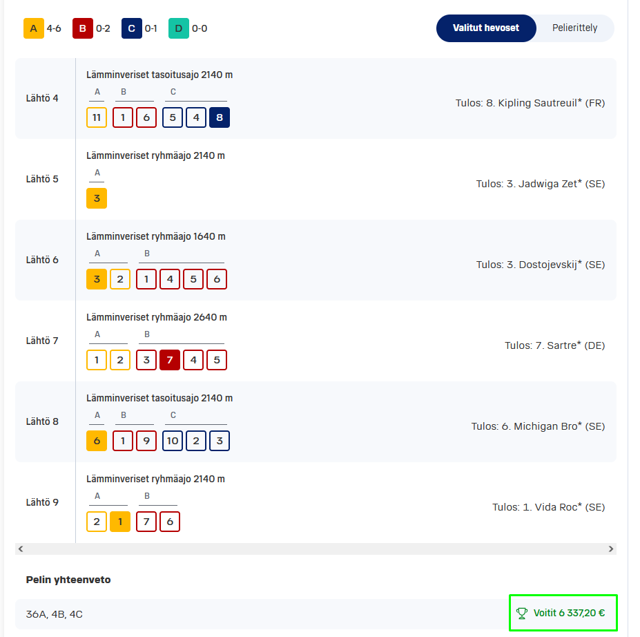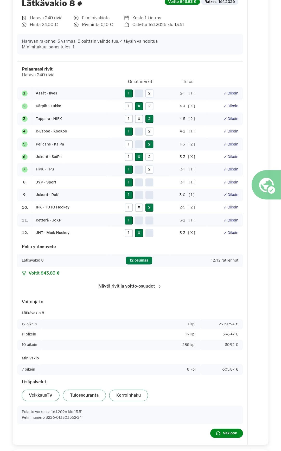 13.9. "Moi, kun yhdistetään kauden alun väärät reagoinnit pelikansalta ja lisäraha niin silloin kannattaa tehdä useampi lappu, esim Vakio Wizardilla. Voi käydä näin:" Liiga-vakiosta asiakkaallemme 5329,52 €!
